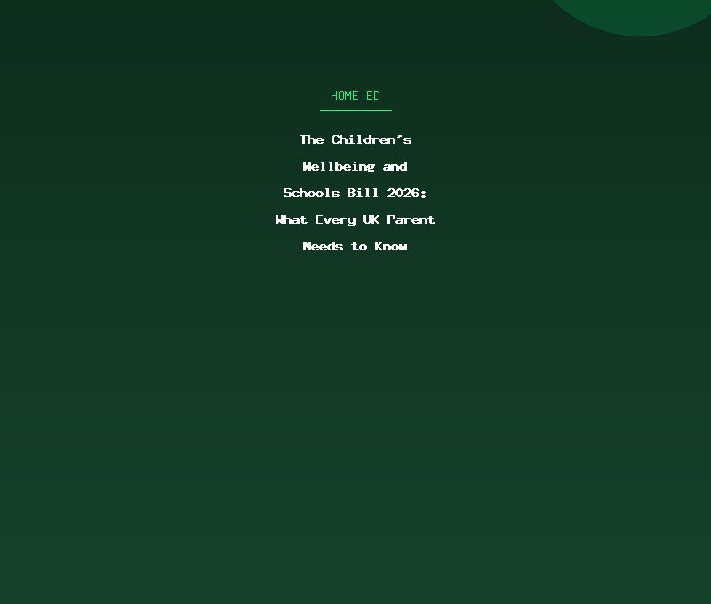 The bill is not just about home education. It also covers looked-after children, care leavers, academy school regulation, teacher qualification requirements, school breakfast clubs, and child protection. But the home education sections are the most controversial and the most widely misunderstood.