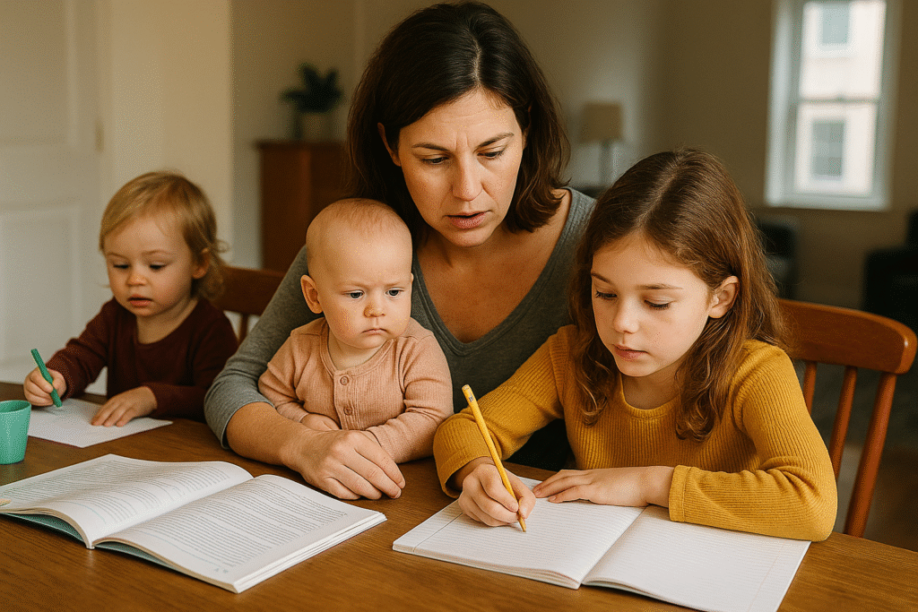 Trying to home educate with a toddler on your leg, a baby on your hip and a big kid mid-meltdown?…