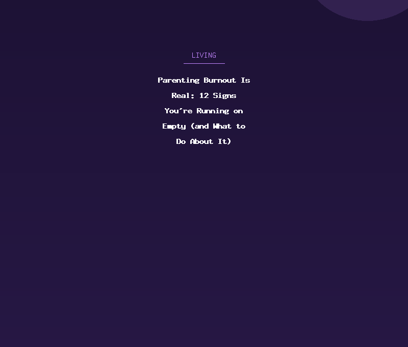 Spilled cereal, a whiny voice, shoes on the wrong feet — things that would normally be mildly annoying now trigger a disproportionate rage. You snap, then feel guilty, then snap again. This is not a character flaw. It is your nervous system telling you it is overloaded. Our guide to understanding your parenting triggers explores this in depth.