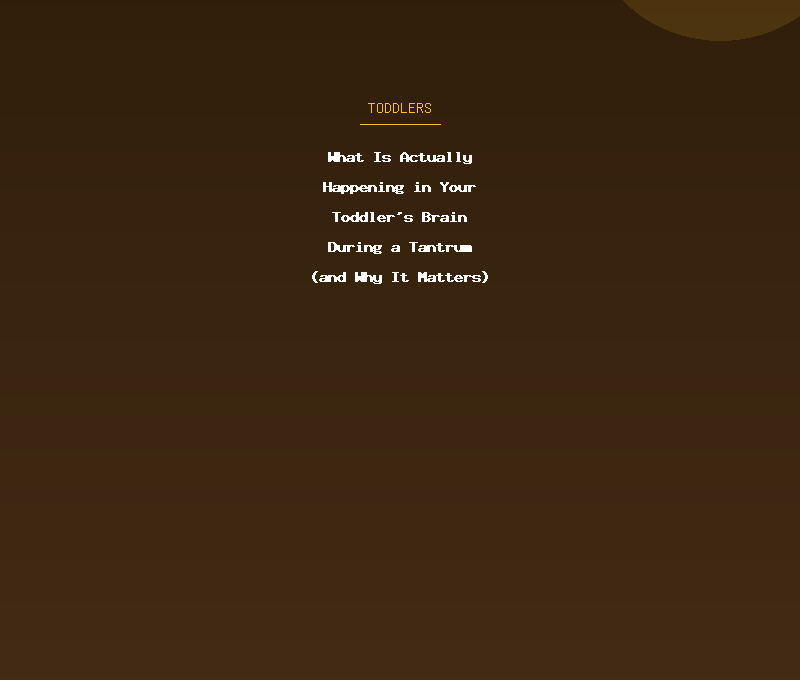 During a tantrum, the downstairs brain has taken over completely. The upstairs brain — the part that could reason, compromise, and see perspective — is literally offline. Your toddler cannot calm down because the part of their brain that manages calm does not work properly yet.